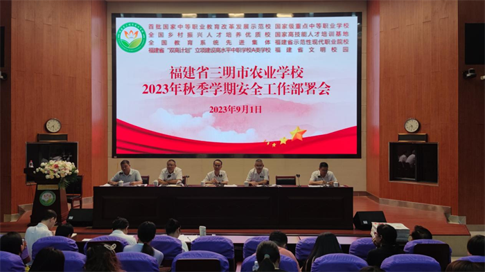 为促进校园安全稳定,进一步强化全校教职员工安全意识,明确各部门、各岗位的安全责任,2023年9月1日下午,三明市农业学校召开安全工作会议,学校党委委员、副校长谢阳军主持会议,全体教职员工参加会议。
